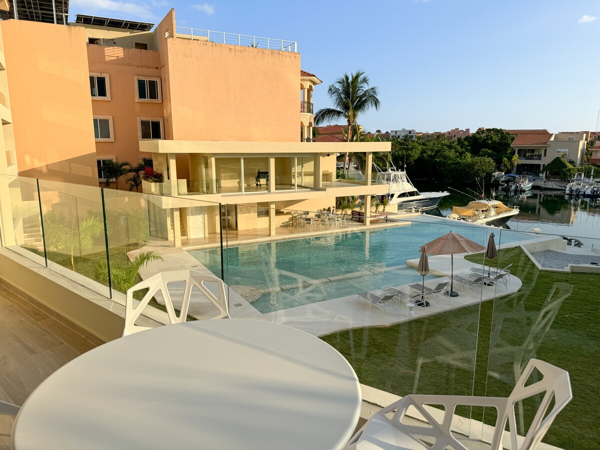 **New dates just opened for Feb-March 2026** Highly sought after Chac Hal Al condo complex is in the best location in all of PA! We are located in an oceanfront condo complex. There are two pools and a private beach with palapas, overlooking the Ocean and Fatima Bay. Our condo is facing the beautiful Marina and manicured gardens. Short walk to area restaurants and excursions. 2 story Penthouse condo with 1 Bedroom, 2 Full baths, 2 spacious balconies, WiFi, A/C, water view. New custom kitchen.
