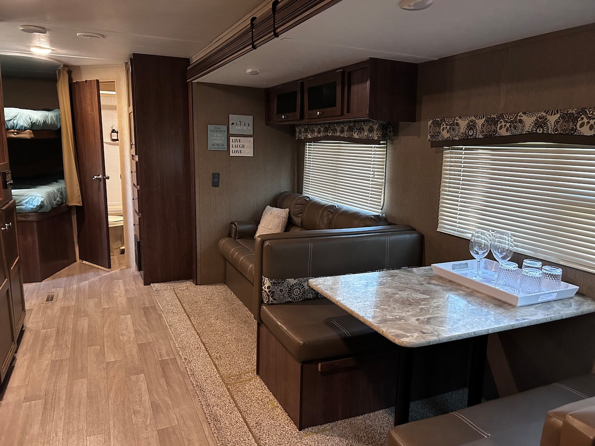 편안한 캠핑카에서 아늑하고 여유로운 시간을 보내세요. 매력적인 엑서터 마을을 즐기기 위해 방문하든 근처의 세쿼이아/킹스 캐년 국립공원의 영광스러운 자연을 만끽할 계획이든, 캠핑카는 기억에 남는 숙박에 필요한 모든 것을 제공합니다. 완비된 전용 캠핑카, 완비된 주방, 식사 공간, 좋아하는 공연을 감상할 수 있는 프로젝터가 완비된 아늑한 침대를 즐기실 수 있습니다!