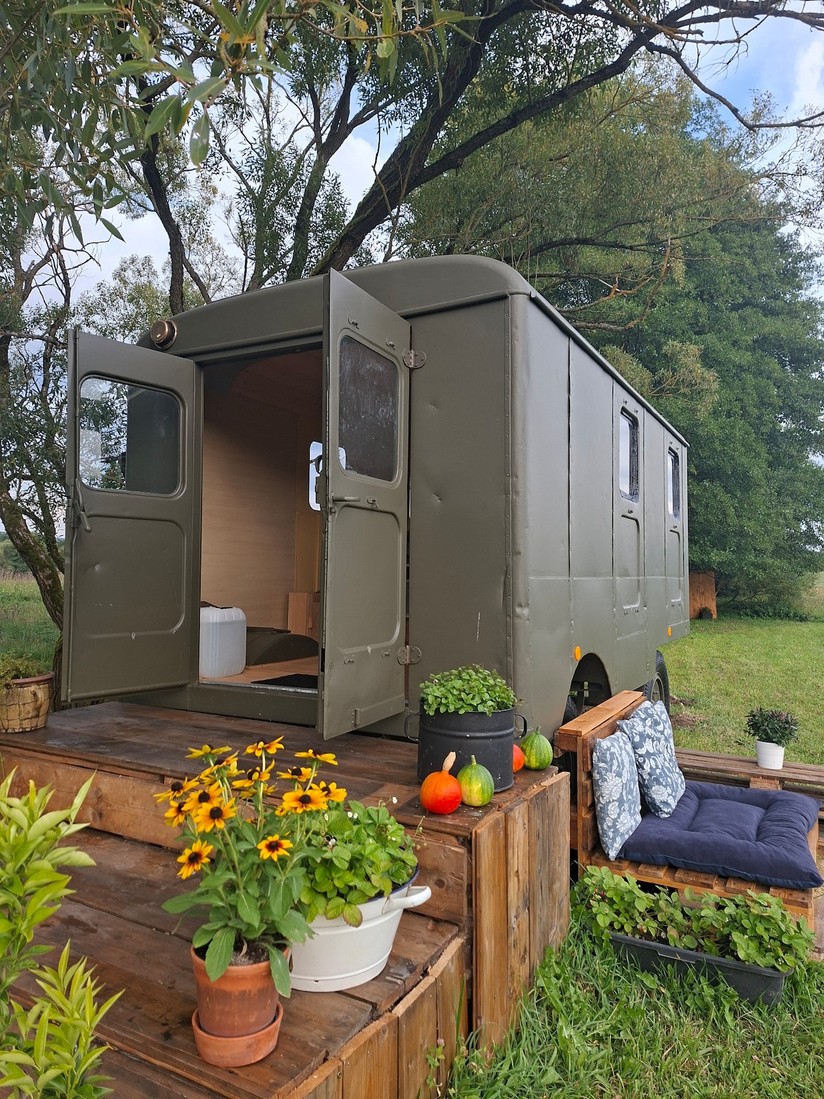 ์ ๋ ์๋ก์ด ์์น๊ธฐ ์ค๋๋ง ์คํ์ผ๋ก ๋ ์ฐฝ์ ์ธ ์์๋ฅผ ์ ๊ณตํฉ๋๋ค. ๋ง์ฐจ ์์ฒด๋ 6x 2.5m์ด๋ฉฐ, ํธ์์์ค์๋ ์ค์๊ธฐ, ์จ์๊ธฐ, ๋ถ๋ฆฌ ํ์ฅ์ค, ์ฑํฌ๋, ์ธ๋์ ํธ๋ธ (๊ฒจ์ธ์๋ ๊ฐ์ค๋ ์ธ์ง์์ ์๋ฆฌํ ์ ์์ต๋๋ค - ์์์ ๋ถ์์ ์๋ฒฝํ ๋ง์ ๋๋ค:), ๋๋๊ณ ๊ฐ ์๋ ๋์ฅ๊ณ , 2์ธ์ฉ ์ํ ๋ฒ ๋, ๋ณดํธ๊ตฌ๊ฐ ์๋ ํธํค ๋งคํธ๋ฆฌ์ค๊ฐ ์๋ 2.3x 1.7m์ ๋ํ ์นจ๋๊ฐ ์์ต๋๋ค. ๋กํ ํธ์๋ ๊ฐ๊น์ด ๊ฑฐ๋ฆฌ์ ์์ด ์์ํ๊ธฐ์ ์ข์ต๋๋ค. ์ฐจ๋ก ์ฝ 3๋ถ ๊ฑฐ๋ฆฌ.