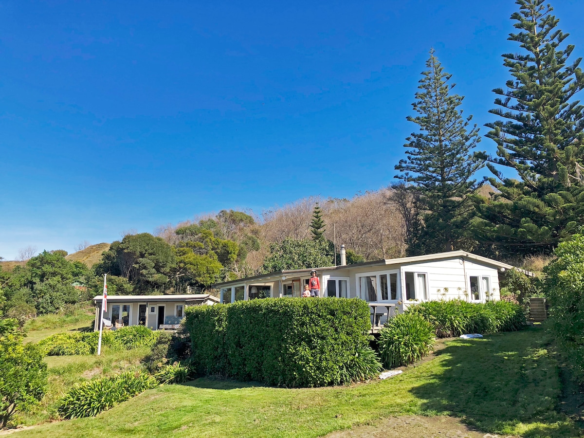 농지로 둘러싸인 햇살이 잘 드는 넓은 해변 숙소입니다. 안전한 수영 해변과 어린 아이들이 즐길 수 있는 라군으로 가는 전용 출입구가 있는 워터 프런트 전망. 보트나 암초에서 즐기는 훌륭한 낚시, 파우아 및 크레이피쉬 다이빙. 주변 토종 덤불과 새가 있는 전용 노외 주차 공간 블랙헤드에서 캐슬포인트까지 왕게후 해안 산책 12월 초부터 말까지 장관을 이루는 유서 깊은 라타 나무를 향해 트레킹을 떠나보세요.