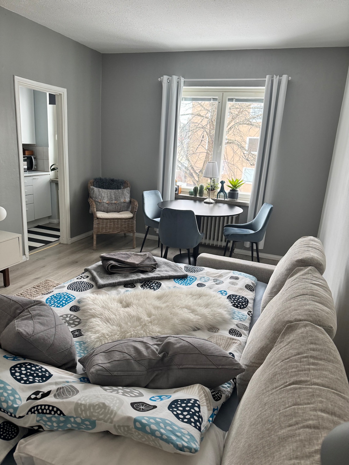 광장에서 만나요! 피에타르사리 중심부에 위치한 55m2의 개조된 1-4인용 2룸 아파트. 침실에는 160cm 너비의 더블 침대, 거실에는 소파 베드 + 싱글 침대. 전자레인지, 식기세척기 등 편의시설. Vi ses på torget! 야콥스타드 -1-4명을 위한 광장 옆의 55m2의 개조된 아파트. 침실에는 160cm 너비의 더블 침대가 있습니다. 거실에는 소파 베드가 있습니다. TV, 전자레인지, 식기 세척기가 있습니다. 야콥스타드/피에타르사리의 절대 중심부에 위치한 1-4인용으로 잘 갖춰진 개조된 아파트