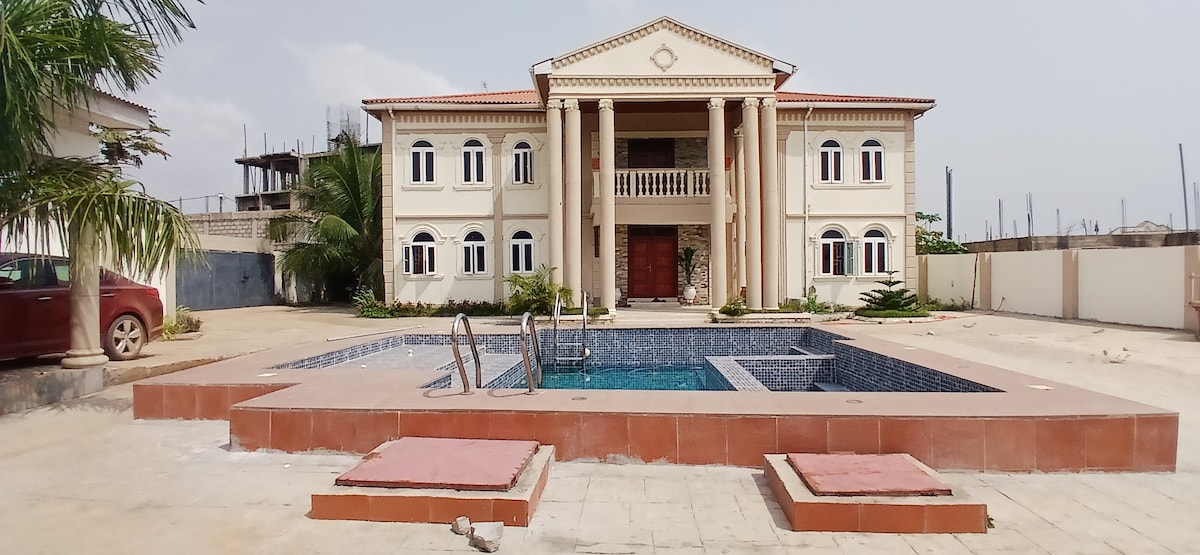 Lamptey Mill School Mills Kasoa 근처에 위치하고 있으며 웨스트 힐스 몰에서 10마일 미만 거리에 있습니다. 이 숙소는 모든 것을 고급스럽게 갖추고 있습니다. 새로운 주방, 에어컨, 샤워용 히터, 카메라, 24시간 경비원, 발전기, 메인 아크라에서 15마일, 바다, 레스토랑, 수영장, 회의를 즐길 수 있는 이그제큐티브 라운지 공간. 숙소는 거대한 거실과 안방, 마스터 욕실 공간을 갖추고 있습니다. 실망하지 않으실 겁니다!!!