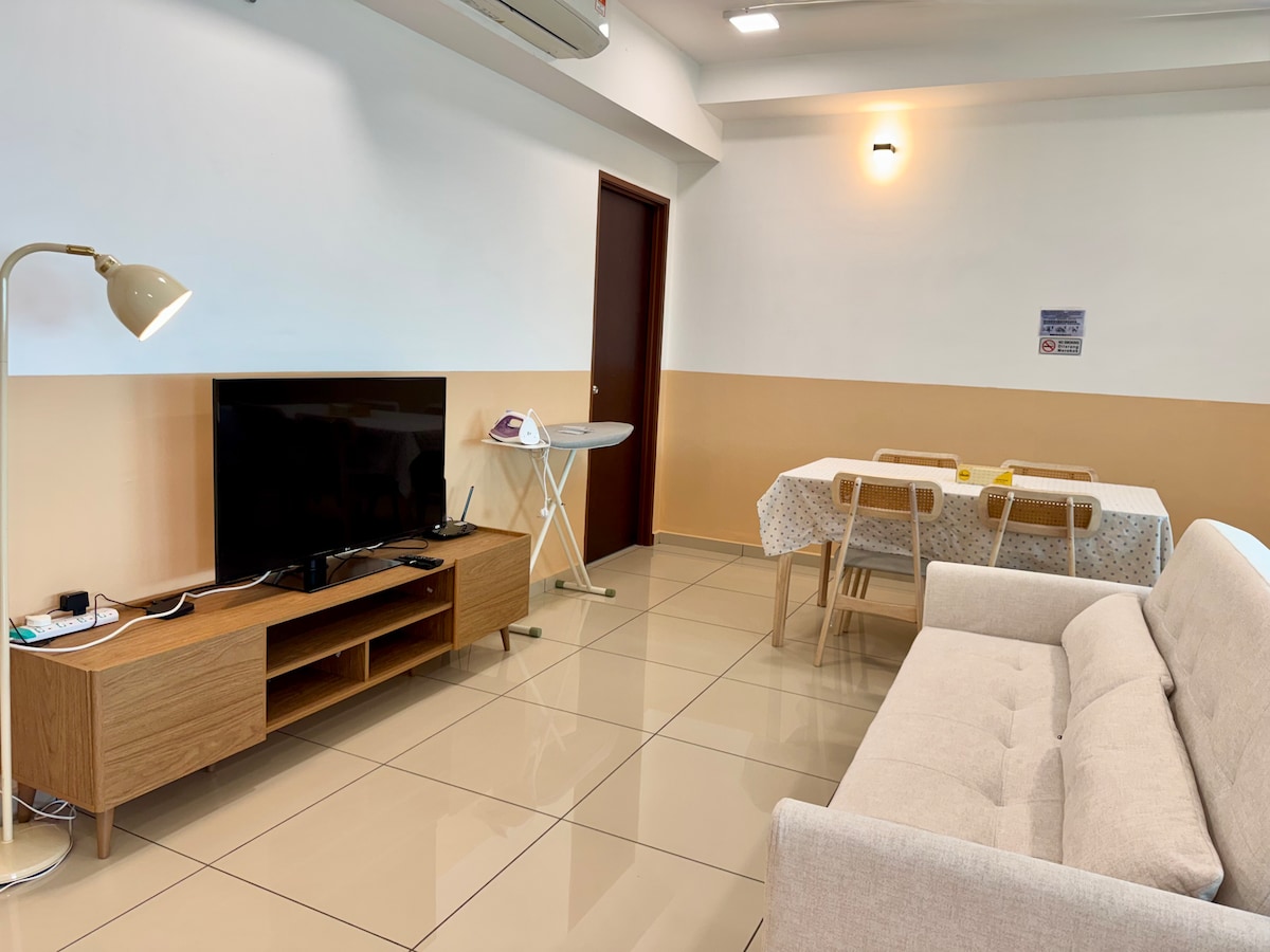 페낭 부킷 메르타잠 한복판에 위치한 새로 지어진 고층 3베드룸 2욕실 아파트입니다. 페낭 브리지, 아이콘 시티, 선웨이 카니발 몰, 선웨이 메디컬 센터 페낭까지 차로 10분, KPJ까지 5분 거리에 전략적으로 위치하고 있습니다. 초고속 와이파이. 긴 투어를 마친 후 휴식을 취할 수 있도록 베스트 미디어 박스가 있는 TV를 제공합니다. 퀄리티 좋고 저렴하며 정직하고 아늑한 숙소 저희 숙소는 가족 및 친구들과 함께 머무르기에 적극 추천합니다. 최대 7명까지 완벽하게 수용할 수 있습니다.