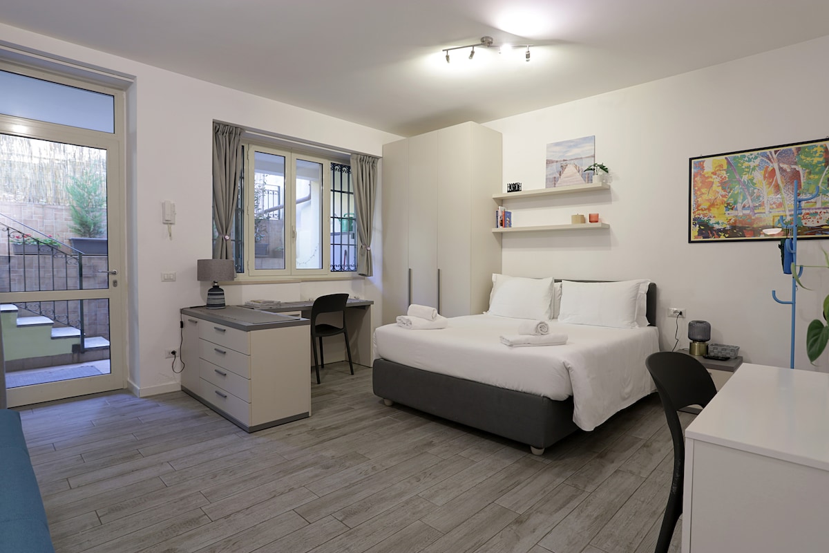 전용 욕실과 독립 테라스가 있는 대형 침실. 시내 단기 숙박에 적합합니다. 숙소 주인의 집을 거치지 않고 바로 계단에서 들어가는 독립된 입구. 와이파이, 커피, 물, 배려, 그리고 최대한의 이용 가능성. 7월 2일부터 에어컨 서비스도 제공되어 따뜻한 계절에 더욱 편안한 휴식을 즐기실 수 있습니다! 도시를 즐기고, 집처럼 느끼고, 필요한 경우 저희가 당신의 가족이 되어드리겠습니다. 환영합니다!