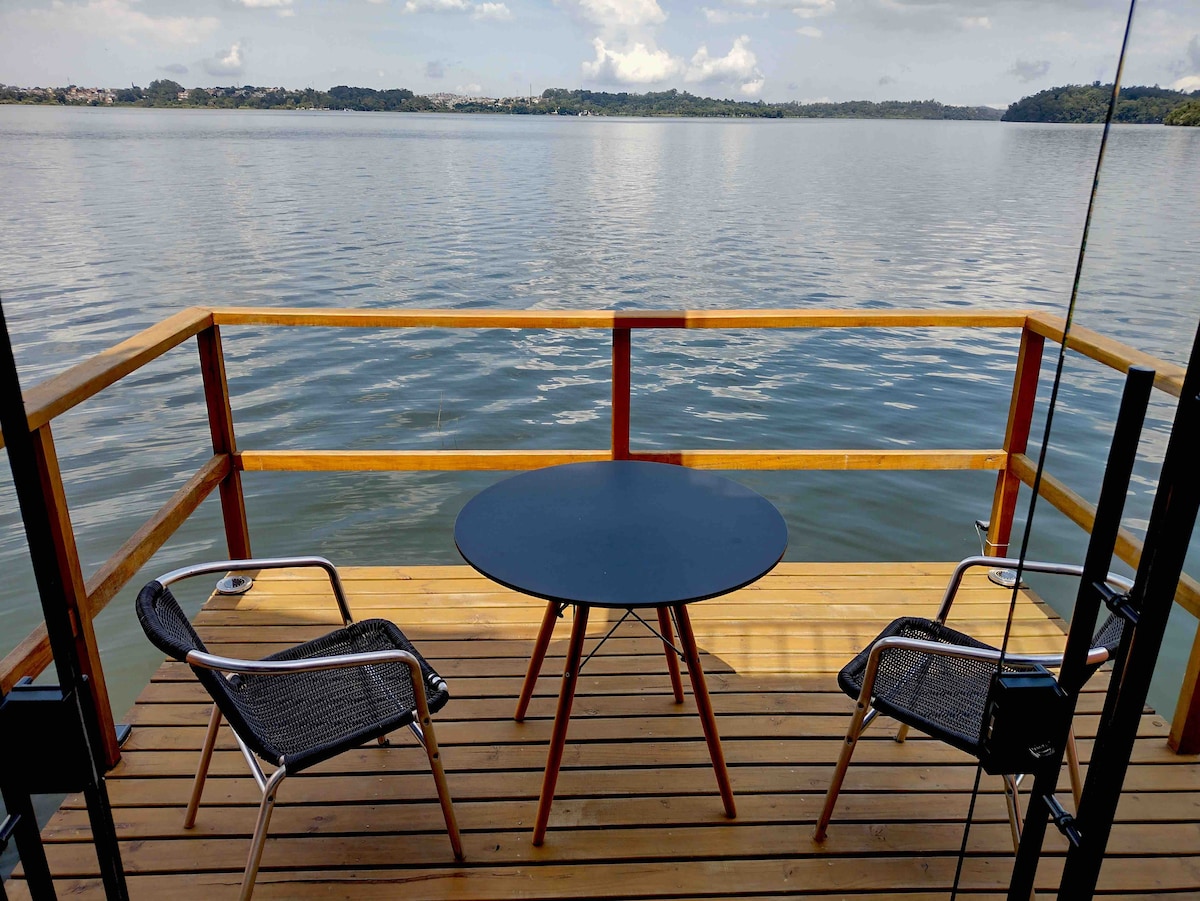 Enjoy Lake Paranoa in a complete and comfortable floating container house boat. During the day you can barbecue, swim, fish and practice water sports. In the late afternoon, admire the beautiful sunset over the lake. At night you can have dinner with calm waters over the light of the moon and stars, with a fire, wine, fondue and grill. It has a bedroom, a private bathroom, a kitchenette, a work station and a deck with a seating area and lounge chairs.