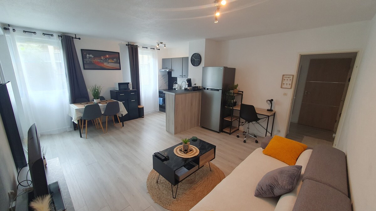 몽펠리에의 문 앞에 위치한 조용한 주거지에 있는 30m2의 작은 듀플렉스에 게스트님을 모시게 되어 기쁩니다. 마을과 800m 거리에 있는 트램에서 가깝고, 슈퍼마켓까지 도보로 1분 거리에 있어 쇼핑을 즐길 수 있으며, 자전거 도로로 바로 연결되고, 전용 주차 공간이 있으며, 고속도로에서 가깝고 해변으로 빠르게 이동할 수 있습니다.