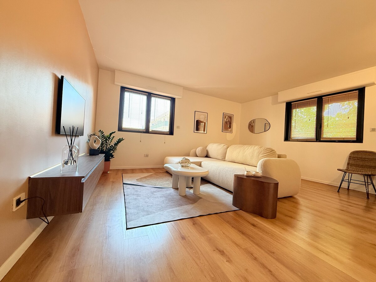 160cm 침대, 넓은 침실, 대형 욕실, 완비된 주방, 대형 연결 TV, 편안한 소파가 있는 2개의 방이 있는 아파트입니다. 주차장이 있는 조용한 지역에 있습니다! 세미 테라스에서 음료를 마시며 로지아를 즐겨보세요. 차량, 전기 주차, 충전 소켓 또는 자전거를 주차할 수 있습니다. 그럼 곧 제 작은 엑소이스 고치에서 뵙겠습니다!