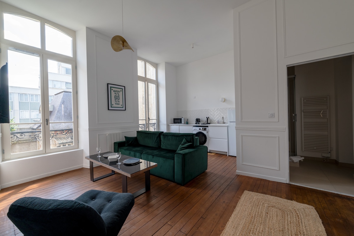 랭스 한복판에서 특별한 휴가를 즐겨 보세요. 도심 한가운데에 자리한 진정한 아르데코 보석 같은 65m² 아파트를 만나보세요. 게스트로부터 높은 평가를 받는 넓은 원형 건물에는 수면 공간이 있으며, 숙소 전체에 개성을 더해 줍니다. 고급 Hypnia 매트리스가 놓인 퀸사이즈 침대를 즐기실 수 있습니다. 주방에는 시설이 완비되어 있습니다. 조금만 걸어나가면 대성당, 공원, 맛집, 트램이 있습니다. 랭스를 둘러보기에 탁월한 환경입니다.