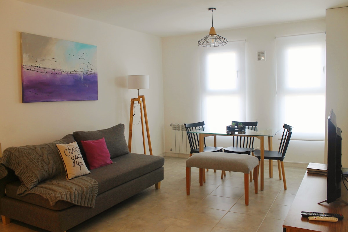 Enjoy Bariloche from a bright apartment with balcony and views of Lake Nahuel Huapi. Just 3 blocks from the Civic Center, on a quiet street, ideal for resting while staying close to everything. One bedroom, one bathroom, full kitchen and cozy living room. Sleeps 4 with a double bed and two single bunk beds. Perfect for couples, families or friends to explore the city and relax watching the sunset from the balcony.