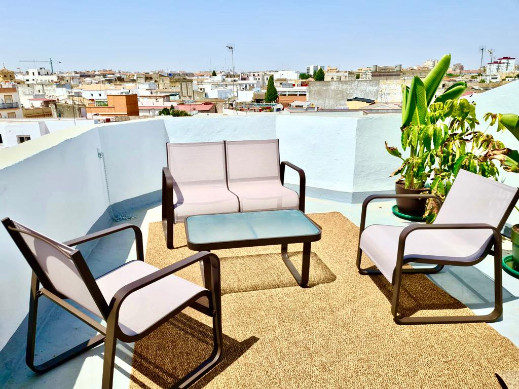 Casa Alegrías. Patio andaluz y terraza privada.
