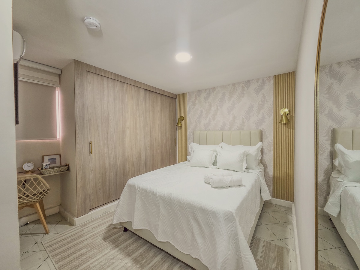 Disfruta de una habitación privada elegante y confortable, ideal para descansar o trabajar con total comodidad. Cuenta con una cama doble con ropa de cama blanca de alta calidad, almohadas cómodas y una decoración moderna que crea un ambiente tranquilo y acogedor. Incluye baño Privado y espacio de trabajo funcional.