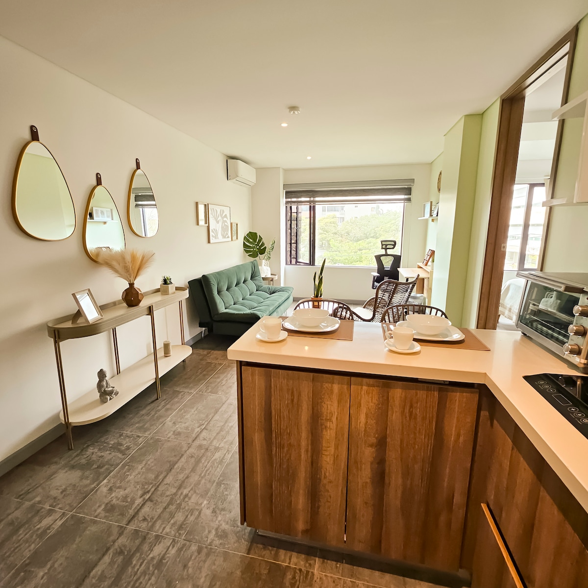 바랑키야에서 가장 특별한 동네 중 하나에 위치한 현대적인 아파트입니다. * 유연한 체크인과 체크아웃 * 퀸사이즈 침대와 에어컨이 있는 침실 1개. * 거실에는 소파 베드와 에어컨이 있습니다. * 식기, 기본 가전제품, 세탁기가 완비된 주방. * 수영장, 사우나, 터키식 목욕탕, 옥상 테라스. * 인근 스마트핏 헬스장. * 전용 주차장 무료. * 비바와 부에나비스타 쇼핑센터, 주요 클리닉 및 관광지에서 가깝습니다.
