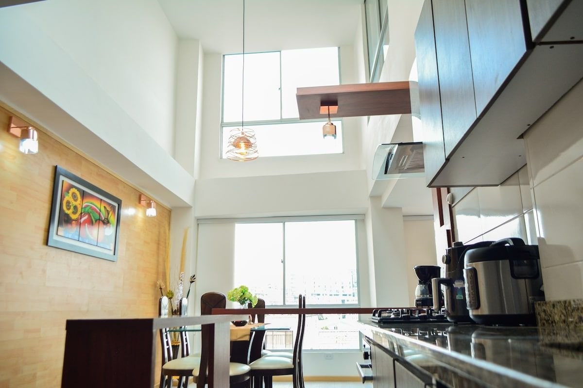 Disfruta de este apartaestudio moderno y totalmente equipado, ubicado cerca de la Zona Rosa El Cable, una de las mejores zonas de Manizales. Cuenta con una vista privilegiada de gran parte de la ciudad, con atardeceres espectaculares que hacen รบnica cada estadรญa. Dispone de habitaciรณn independiente, sala y comedor separados, cocina integral moderna, baรฑo privado y parqueadero cubierto privado. Ideal para turismo, descanso o trabajo, con todas las comodidades para sentirte como en casa siempre