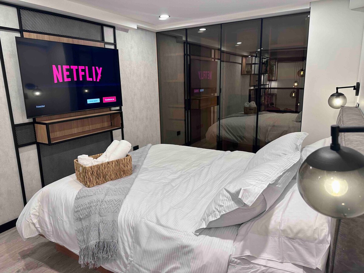 보고타 (치코) 에서 가장 독점적이고 안전한 지역에 위치한 럭셔리 원 베드룸은 최고의 레스토랑, 쇼핑 센터에서 도보 거리에 있으며 많은 업체와 가깝습니다. 전용 작업 공간, 전용 테라스, 자동 벽난로, 안정적인 와이파이, 전용 주차장 및 건물 보안을 갖춘 최고 수준의 숙소. 어메니티: 벽난로와 야외 그릴이 있는 아름다운 파노라마 테라스를 즐겨보세요. 사우나나 스팀룸에서 스쿼시를 즐기고 휴식을 취해보세요.