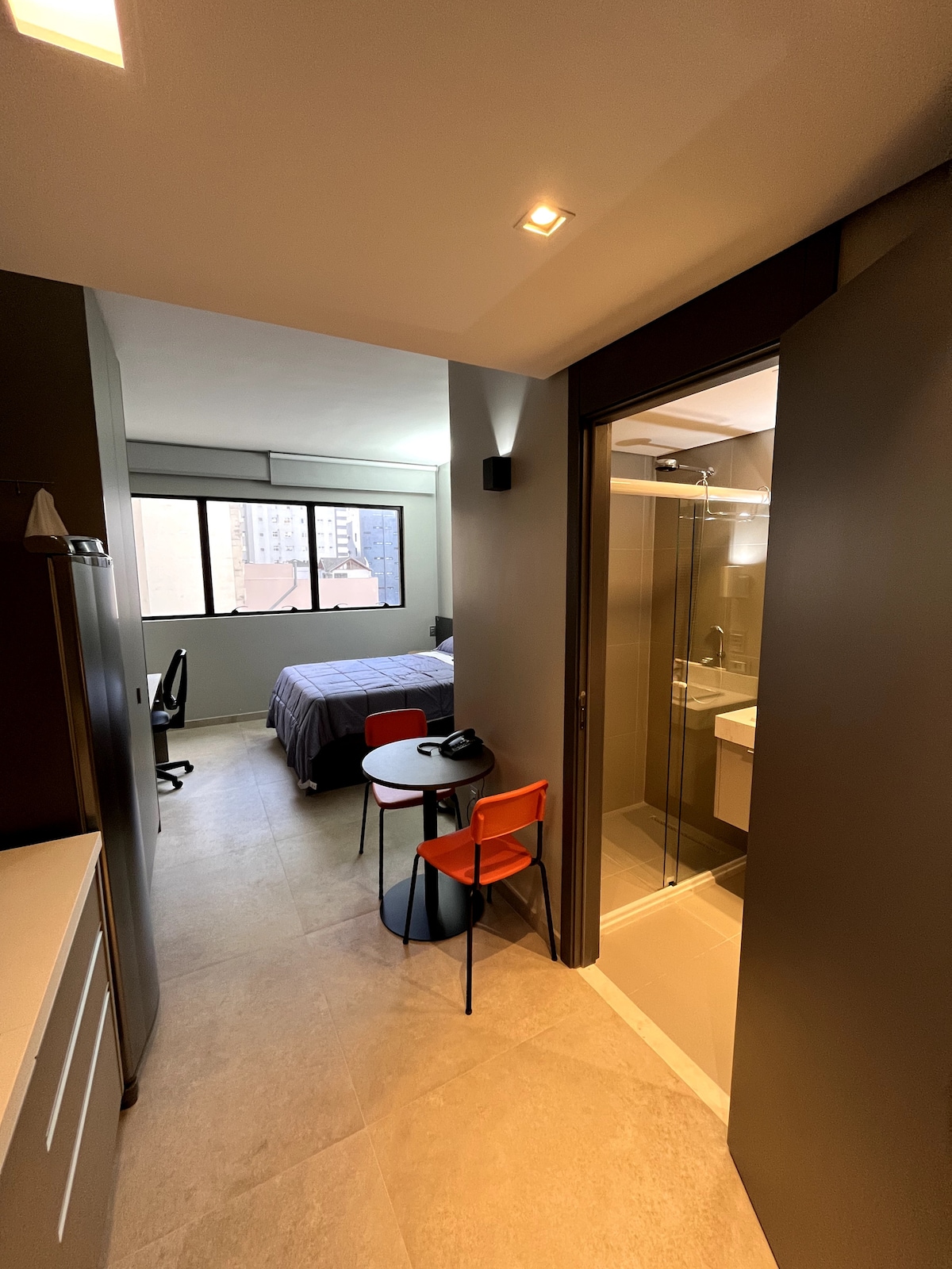 Studio moderno, no Centro Cívico — ideal para quem busca conforto, praticidade e excelente localização em Ctba. Ambiente climatizado, cozinha equipada e Smart TV — perfeito para lazer ou trabalho. 🛏️ Acomoda com conforto até 4 pessoas, roupa de cama de qualidade. • Piscina aquecida • Academia • Sauna • Terraço • Lavanderia (paga) ⚠️ Para uso da piscina o condomínio exige apresentação de atestado. 🚗 Estacionamento disponível no prédio, valor R$ 35 por diária Pago via PIX ao anfitrião.