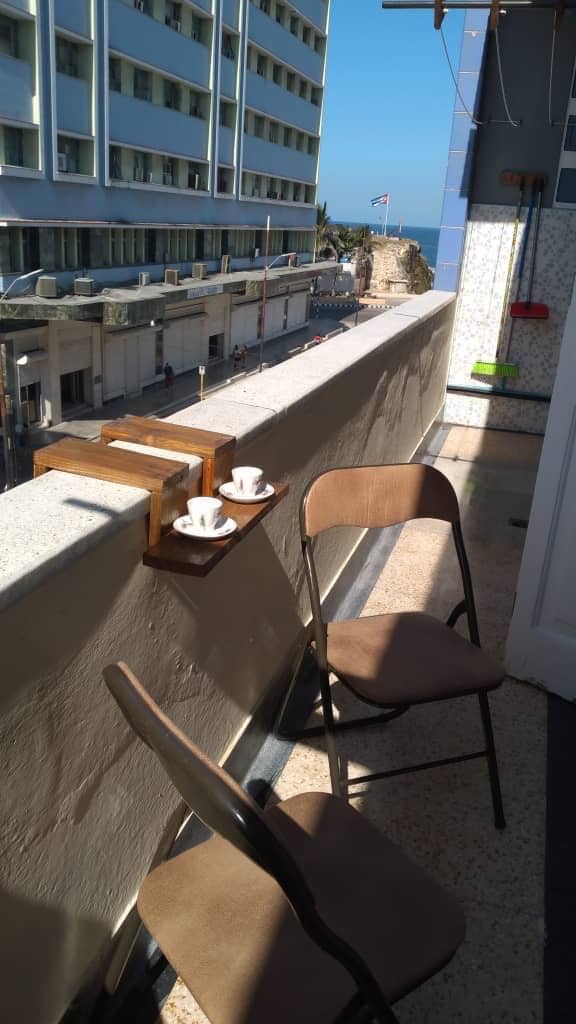 Sensacional espacio en el Vedado, a dos pasos del Malecón, con vistas a la ciudad y el mar, le invitamos a relajarse y aislarse del bullicio citadino, gracias a la espaciosa terraza que domina el barrio. Una habitación, salón y baño independiente. Cama King size que puede separarse en dos camas twin . WIFI gratis . Contamos con paneles solares y baterías que permiten tener electricidad y funcionamiento de los equipos menos los AC. Para esta situación tenemos ventiladores que podrás utilizar.