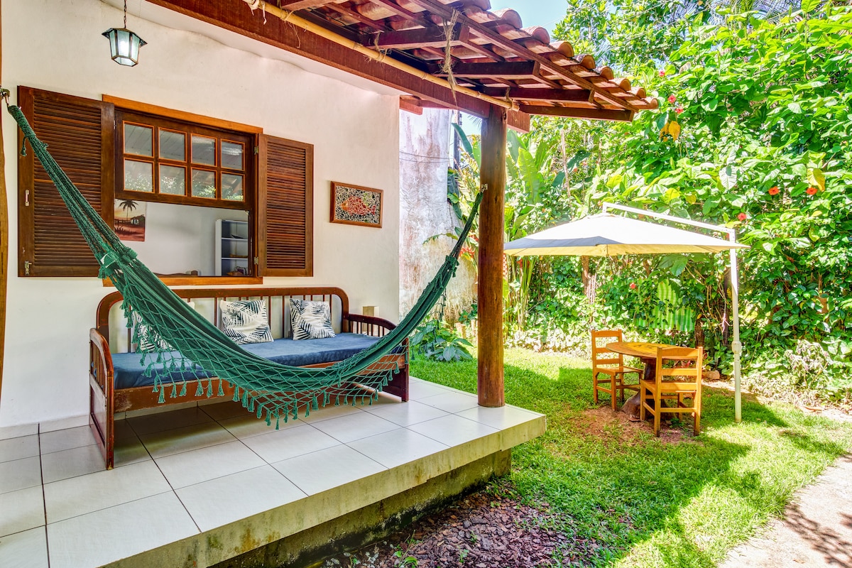 Casinha Missanga is a holiday house in a garden. The house has a bedroom with a double bed, a bedroom with a single bed, which can be used as a lounge, when it is used by a couple only. All spaces are fully furnished. The house has 44 m², plus varanda, churrascaria, shower to the pool and a little laundry.