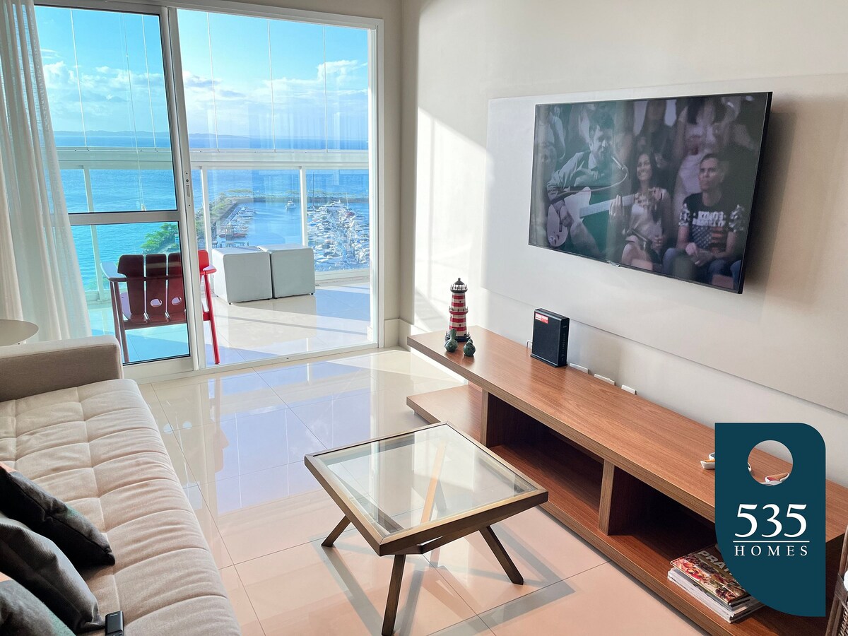 Se hospede em um incrível e aconchegante apartamento com a vista mar mais linda de Salvador, localizado no Cloc Marina Residence. O condomínio fica muito próximo ao complexo Bahia Marina, que possui os melhores restaurantes de Salvador. Ideal também para turismo náutico. No entorno é possível fazer passeios de barco, lancha, jet ski, praticar canoagem, stand up paddle, etc. O ambiente tem uma decoração moderna, com cozinha, suíte, sala com Smart TV a cabo e uma varanda com uma