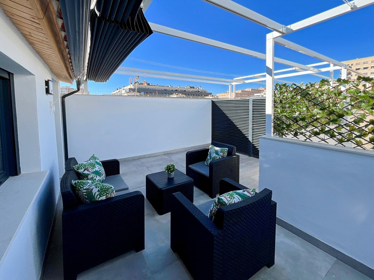 페르첼 지구의 멋진 테라스가 있는 이 아름다운 듀플렉스에서 시장과 카르멘 교회 옆에 있으며 숙소 옆에 모든 서비스가 있습니다. 피쿠 홈은 번화한 중심가보다 조용한 분위기를 원하는 경우 적합합니다. 라리오스 거리에서 10분 거리에 있으며, 해변에서 도보로 가까운 거리에 있으며, 기차역에서 매우 가깝습니다. 떠나기 전에 무료 아침 식사를 제공합니다. 계획을 알려주시면 필요한 모든 것을 도와드리겠습니다.