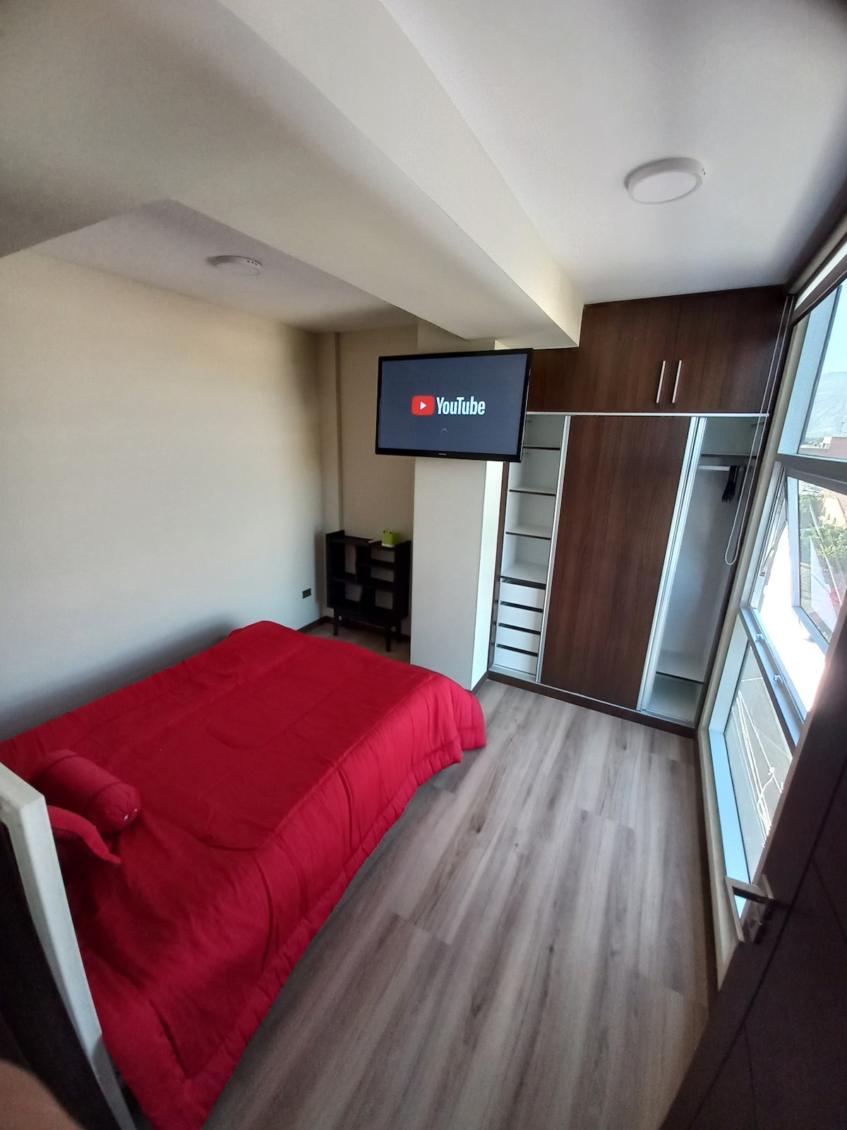 New and Modern Apartment on the Main Avenue of the Best Area in Cochabamba. ✨ In front of the Best Mall in Cochabamba, surrounded by restaurants, shops, supermarkets, and parks. ✨ It has 2 bedrooms with Queen-sized beds and a 2-person sofa bed. ✨ Equipped kitchen with refrigerator, microwave, and oven. ✨ Fiber Optic Wi-Fi, Smart TV, Alexa. ✨ Common areas (by prior consultation): Terrace with Pool and the best panoramic view, Gym, Grill.