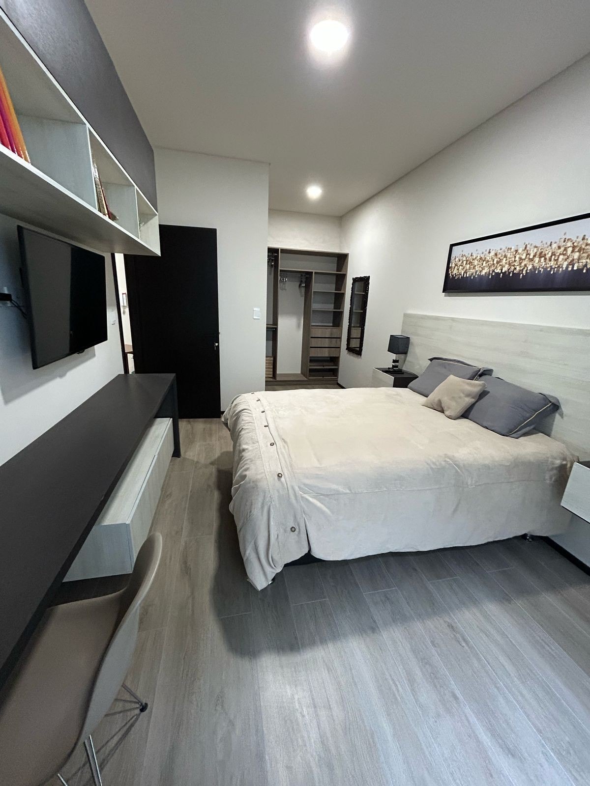 Disfruta del encanto de este moderno Smart estudio completamente nuevo. Amoblado y equipado con todo lo necesario para hacer de tu estadía un momento placentero. Cuenta con cama extra cómoda, tamaño Queen, TV de 32 pulgadas y Wifi. Además de refrigerador, cocina, caldera eléctrica, mesa con dos sillas. Agua caliente 24/7 Disfruta de este ambiente confortable en tus viajes de placer o de negocio.