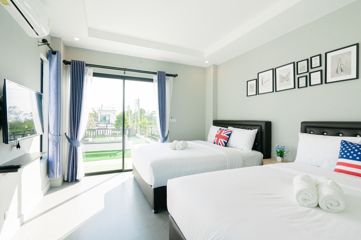 매력적인 4베드 빌라 | 블루 라군 후아힌 | 수영장 이용 및 해변까지 도보 거리 다음에 딱 맞는 곳 - 가족 휴가, 원격 업무 그룹, 친구 그룹 또는 편안한 휴양지로 아름다운 해변에서 불과 몇 분 거리에 있는 저희 숙소는 편안함, 스타일, 열대 평온함을 조합합니다. 빌라 주요 특징: - 아늑한 침실 4개 – 최대 12명 숙박 가능 (지상층에 위치한 침실 1개) - 수영장 이용 - 현대식 주방 및 조리 도구 - 넓은 테라스 – 야외에서 식사를 즐기고 휴식을 취하기에 좋습니다. - 빠른 와이파이 및 스마트 TV