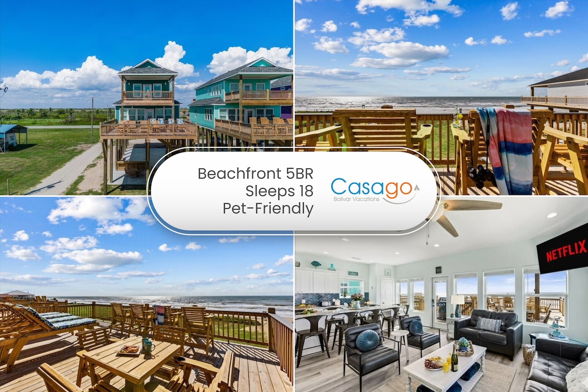 해변 앞 3BR | 데크, 그릴, 바다 전망