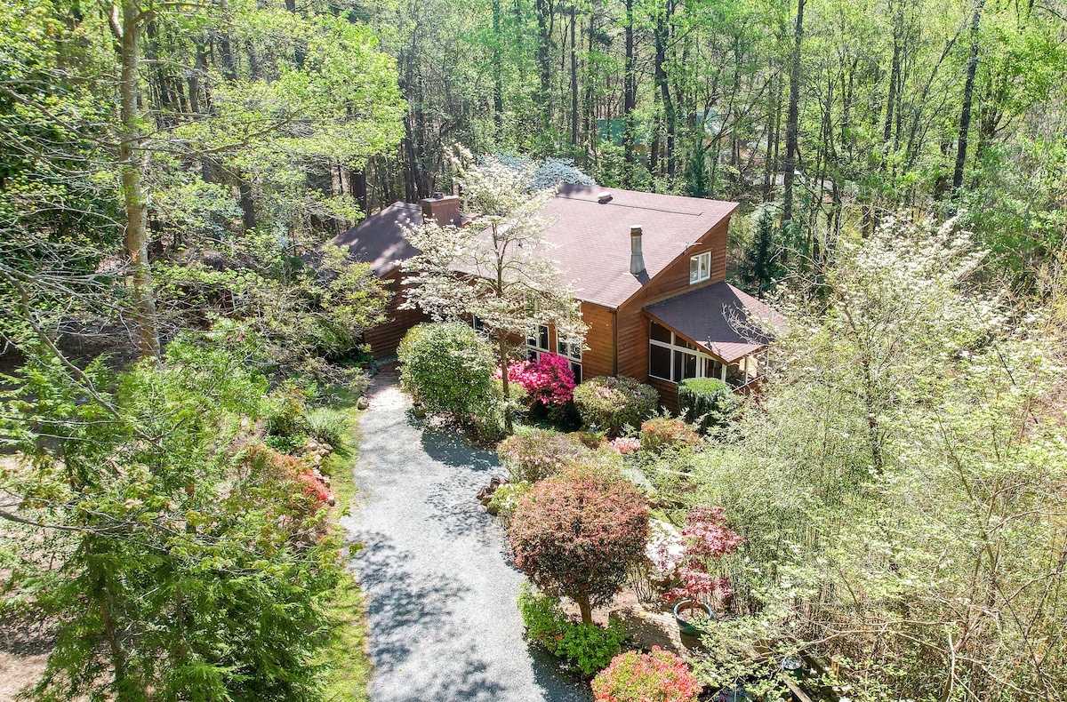 채플힐 중심가에서 완벽한 로맨틱한 휴가를 보내기 위해 이 놀라운 작은 집을 예약하세요! 야생동물이 가득한 사유지 숲에 위치하고 있지만 프랭클린 스트리트와 UNC 캠퍼스까지 도보로 단 5분 거리에 있습니다. 바닥에서 천장까지 이어지는 창문에서 잔디밭에서 노는 여우와 사슴의 놀라운 전망을 즐겨보세요. 천창을 통해 나무를 바라보며 벽에서 벽까지 이어지는 해먹에서 휴식을 취해보세요. 대형 프로젝터로 침대에서 영화를 감상하며 휴식을 취해보세요. 트라이앵글에 이와 같은 것은 없습니다!