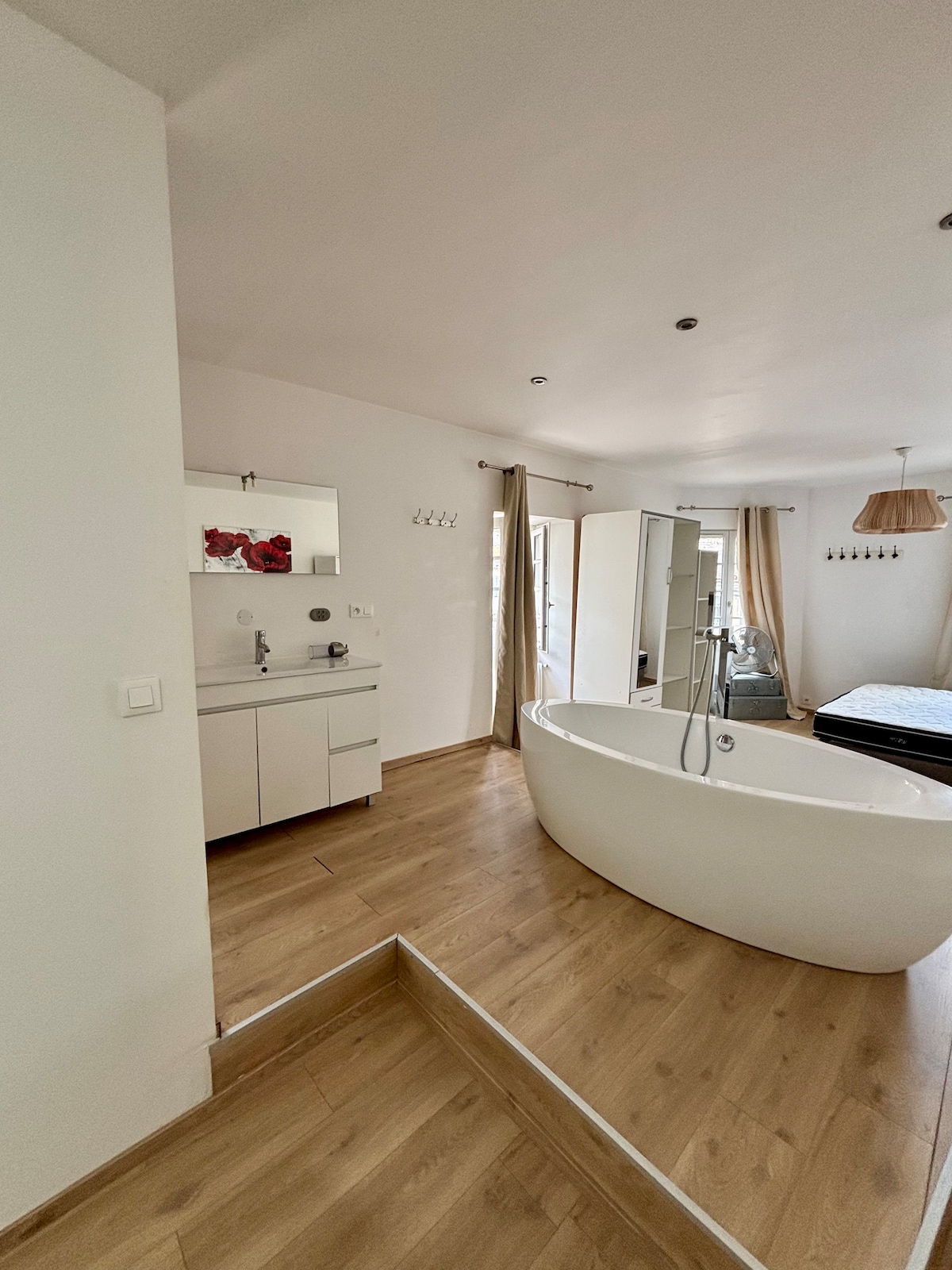 이 놀라운 로프트는 세련된 주방과 매력적인 라운지를 완벽하게 조화시키는 넒은 거실 공간을 제공하며, 휴식과 엔터테인먼트를 즐기기에 안성맞춤입니다. 위층의 수면 공간은 조용한 휴식을 제공하며, 하루 종일 탐험을 즐긴 후 고급스러운 욕조에서 편안한 휴식을 취할 수 있습니다. 모든 디테일이 세심하게 준비되어 있어 최고의 경험을 보장하며, 라로셸의 중심부에 있는 진정한 안식처입니다.
