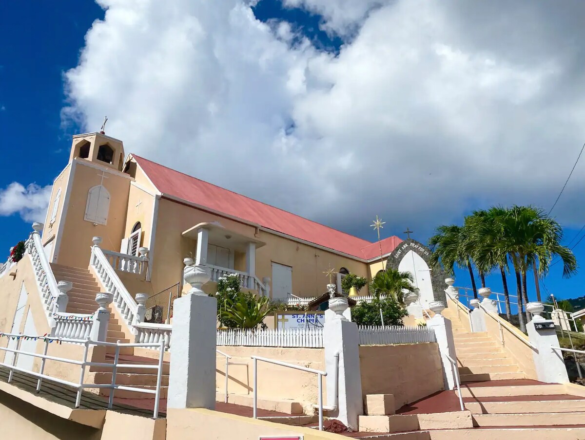 Indulge in the serenity of our Rock City retreat, where breathtaking ocean views meet refined comfort. Enjoy the patio, WiFi, AC, and eco-friendly solar energy. Ideally situated for families and travelers alike, our haven is close to Morningstar Beach, Westin conferences, and Havensight shopping. For added convenience, rent an SUV or utilize taxi services. Click on our Group Villa listing which offers ample space for up to 15 guests. For a seamless stay, review listing details and house rules.