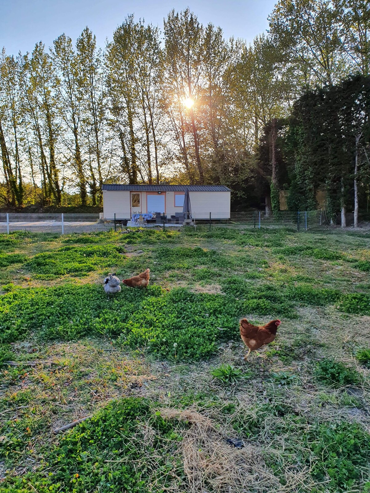 Situé à 10mn de Saint Rémy de Provence, notre mobil-home en campagne, refait à neuf, vous accueillera vous et vos enfants, ou vos amis, grâce à sa suite parentale, et une petite chambre contenant un clic-clac 2 places, avec un matelas Bultex. Une cuisine toute équipée pour faire de bons plats, et manger avec vue sur nos animaux grâce à la grande baie vitrée. Un bel extérieur avec boulodrome, aire de jeux, ainsi que nos animaux qui sauront vous tenir compagnie ! NOUS NE SOMMES PAS EN CAMPING
