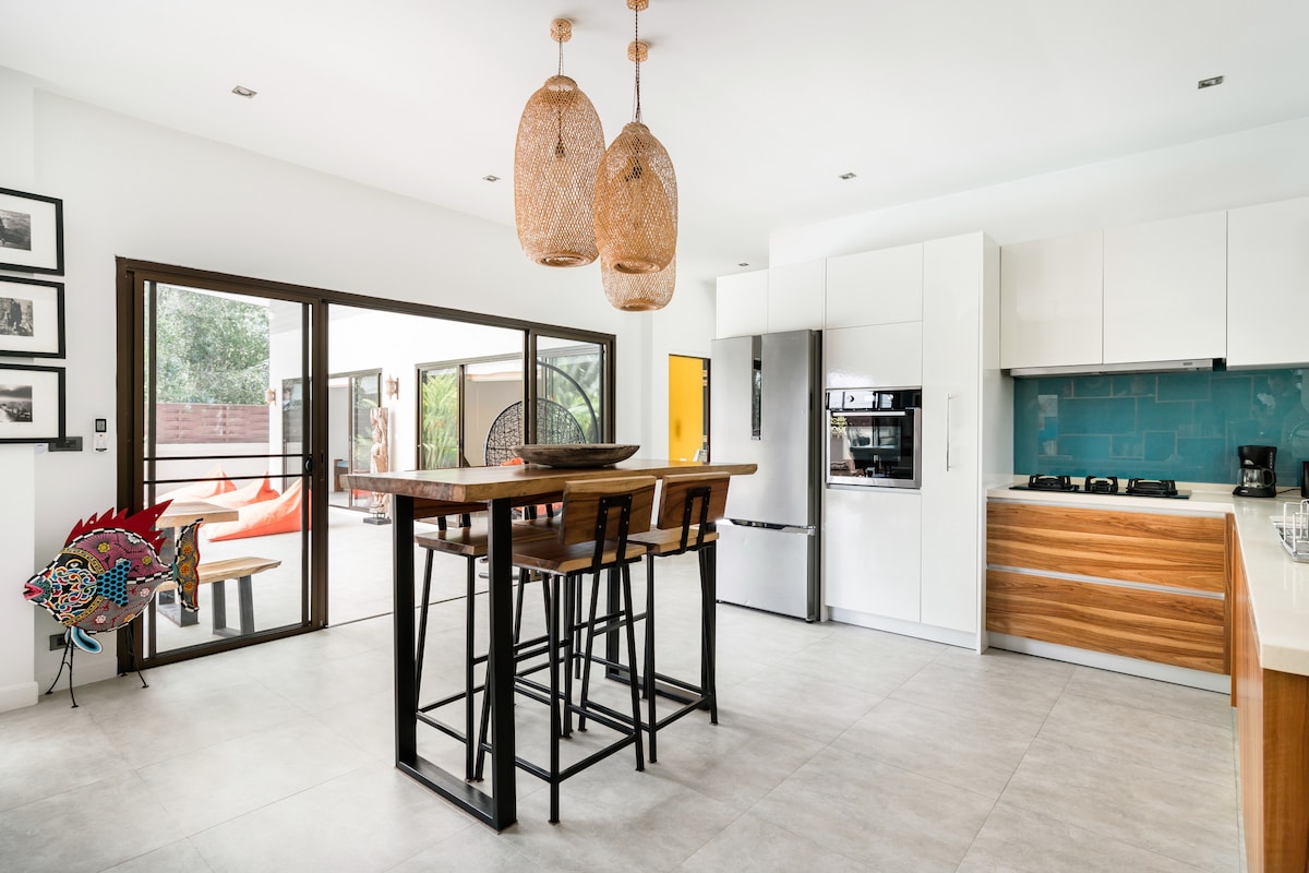 천장이 높고 따뜻하고 독특한 디자인의 이 넓고 밝은 저택에서 숨 막히는 바다 전망을 감상하세요. 침실 3개(전용 출입구가 있는 침실 1개 포함), 전용 수영장, 시설이 완비된 주방, 초고속 와이파이가 있습니다. 해변에서 도보로 가까운 거리에 있으며, 아침 식사, 마사지 또는 수영장(추가 비용)을 즐길 수 있는 베이뷰 리조트 옆에 있습니다. 자연 한가운데에 위치한 평화롭고 세련된 은신처.