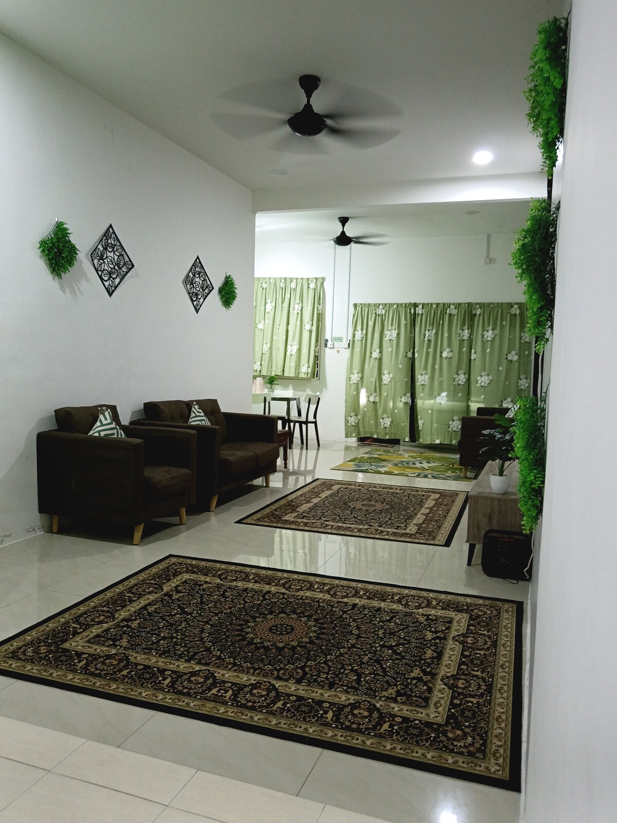 온 가족이 이운을 놓을 수 있는 공간이 많은 이 멋진 숙소에 오세요. 100% 무슬림 홈스타야 및 무슬림 전용 에어컨이 있는 리빙 할 침실 3개 마스터 침실 - 컨디셔닝 + 선풍기 구비 퀸 침대 두 번째 침실 - 퀸 침대 + 선풍기 구비 3번째 침실 -싱글 침대 + 선풍기 구비 텔레비전 식사 공간 세탁기 화장실 1개 샤워젤, 샴푸도 제공 주방 주차 공간