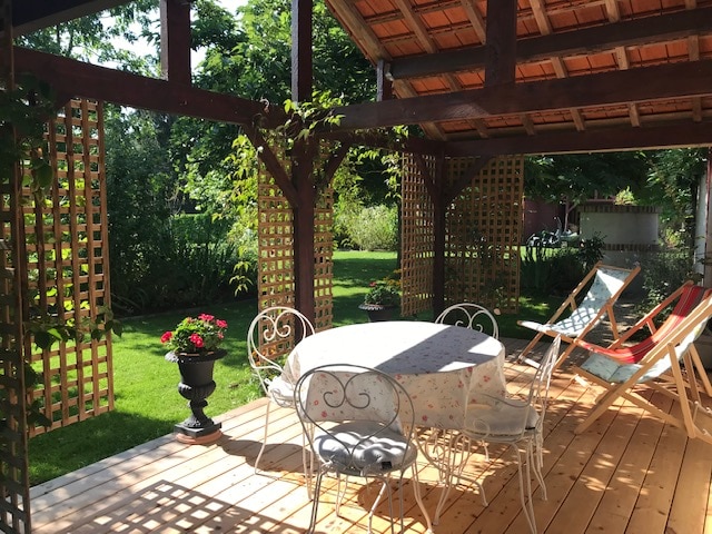 Maisonnette 30 m2, toute équipée, avec jardin privé et accès piscine en saison. Parking sécurisé à la demande. A 10 min de Bourges en voiture et à 5 min à pieds: - de l'abbaye de PLAIMPIED - de la voie verte qui rejoint Bourges, en longeant le canal du Berry. Jolie balade pour tous, y compris pour nos amis à 4 pattes - d'une aire de jeux pour enfants, dans un joli parc - d'une supérette, d'une boulangerie, d'une boucherie et d'un restaurant sympa. Matériel bébé. Espace de travail/wifi ht débit.