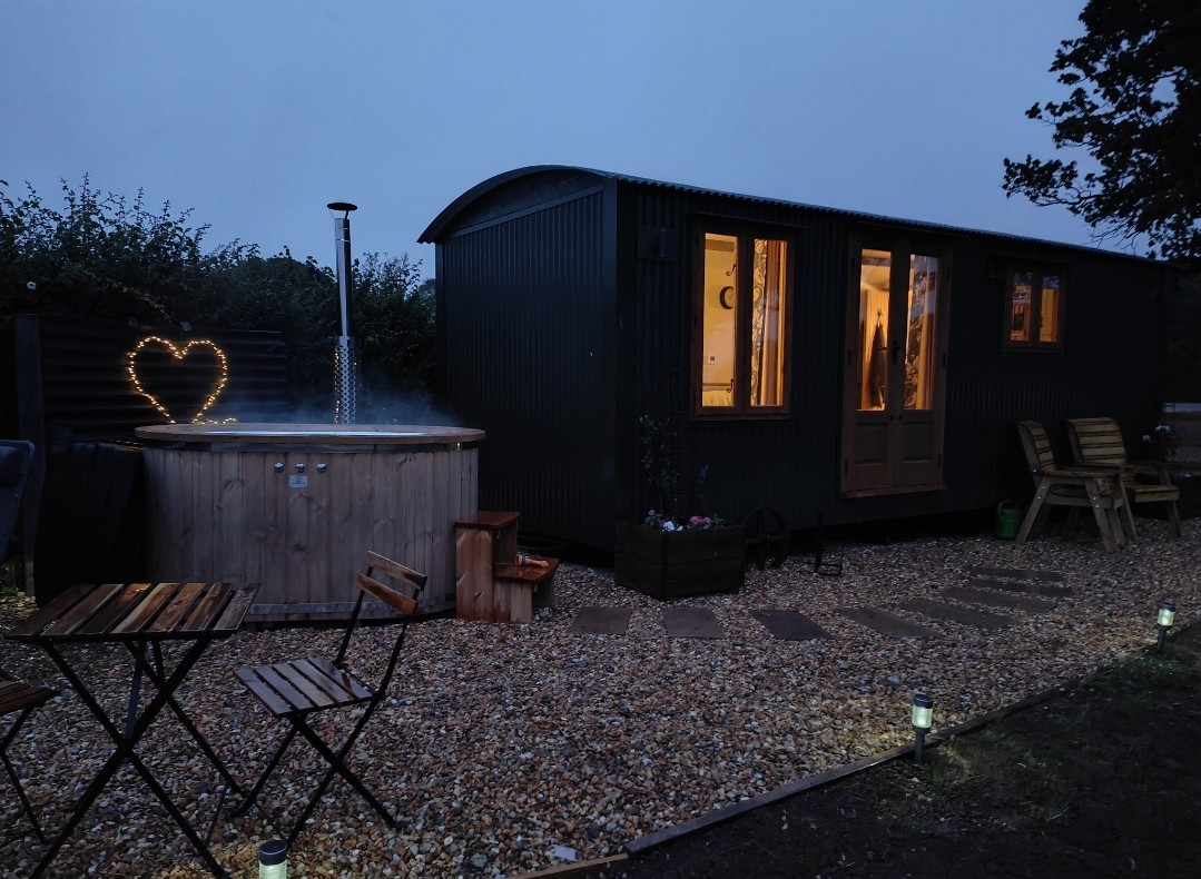 Luxury Shepherds Hut with wood fired hot tub