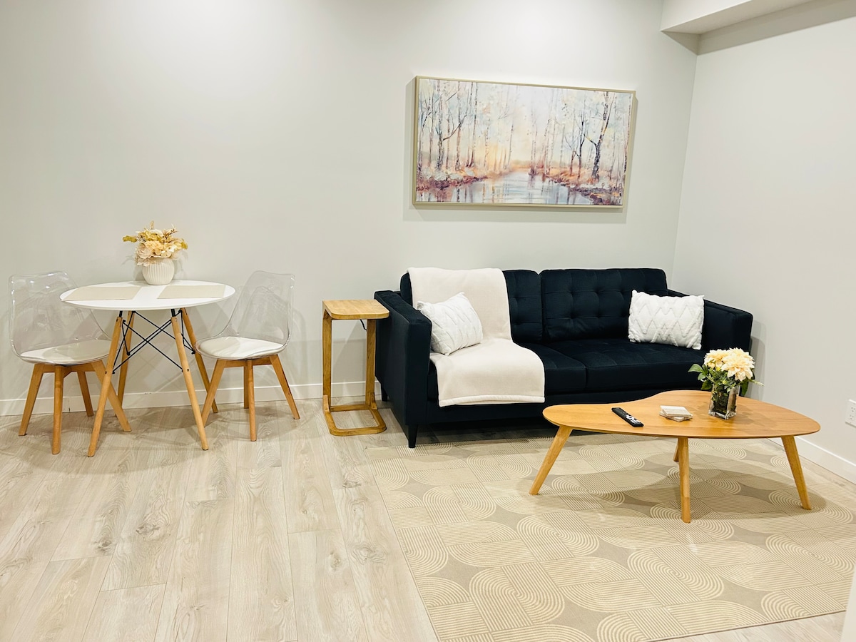 고급스럽고 아늑한 전용 침실 1개 스위트에 오신 것을 환영합니다! 이 스위트는 나홀로 여행자나 커플에게 완벽한 휴양지를 제공합니다. 따뜻하고 아늑한 분위기와 9피트 높이의 천장을 자랑하는 이 숙소는 편안한 가구, 시설이 완비된 주방, 편안한 밤을 보낼 수 있는 평화로운 침실을 갖추고 있습니다. 아늑한 실내에서 휴식을 취하거나 주변 관광지를 둘러보며 잊지 못할 추억을 만드세요.
