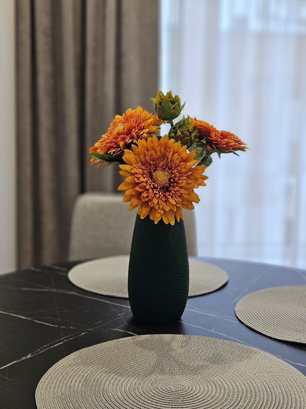 Relaxează-te într-un apartament elegant în inima Chișinăului, cu finisaje din marmură și lemn natural. Te vei bucura de o saltea premium Vi-Spring Bedstead, o cadă spațioasă și un balcon cu șemineu decorativ. Apartamentul are perdele cu telecomandă și espressor cu cafea pe boabe Blocul beneficiază de recepție și pază 24/24, oferindu-ți un plus de siguranță, confort și liniște pe durata întregii șederi.