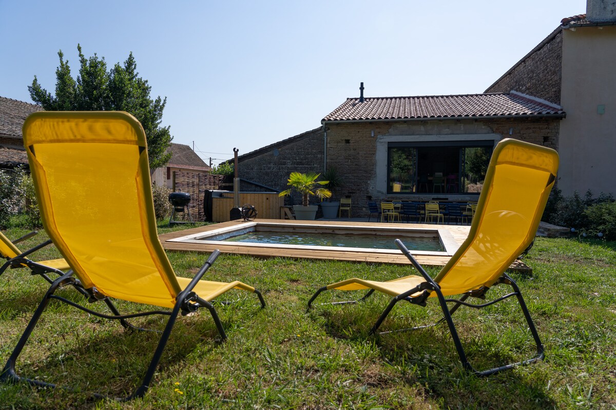 모든 편의 시설(케이터링, 슈퍼마켓, 레스토랑, 베이커리, 영화관, 극장)에 가까운 시골의 이상적인 위치. 대형 정원 이용 가능 TGV 역과 고속도로 접근까지 5분 거리에 있으며, 소음 등의 불편함이 전혀 없습니다. 클루니에서 15분, 리옹에서 45분 솔루트레 바위와 마코네 포도원은 도보 거리에 있습니다. 올해 사온은 올림픽 조정 훈련 중심지 중 하나가 될 것입니다. 투르 드 프랑스 경로는 숙소에서 500m 거리에 있습니다.