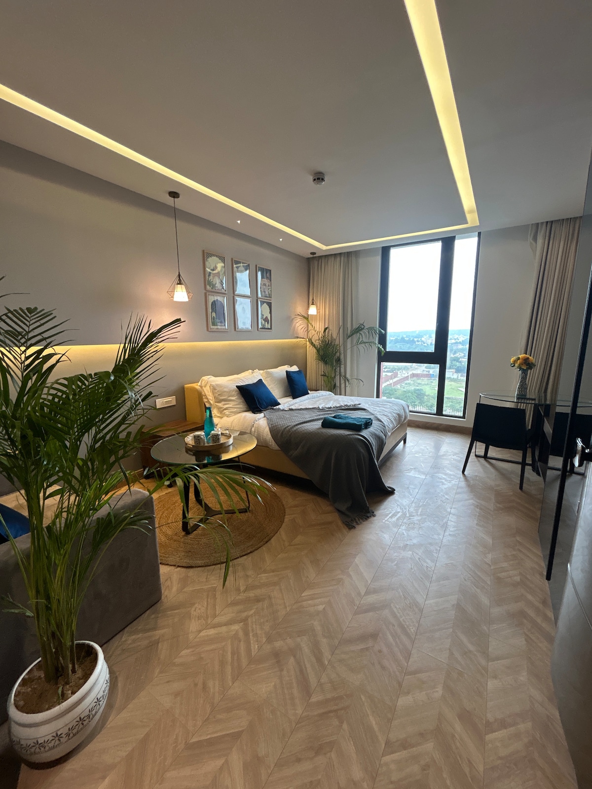 Welcome to our high-rise retreat with a vibrant touch of greenery! This place that offers everything you'll need for a luxurious stay. Located in a prime location, our apartment offers convenient access to city's attractions, dining hotspots, and entertainment venues. Wake up to the gentle glow of sunlight filtering through the curtains, rejuvenated and ready to explore all that the city has to offer. Experience the best of city living with a touch of greenery โ book your stay with us today!