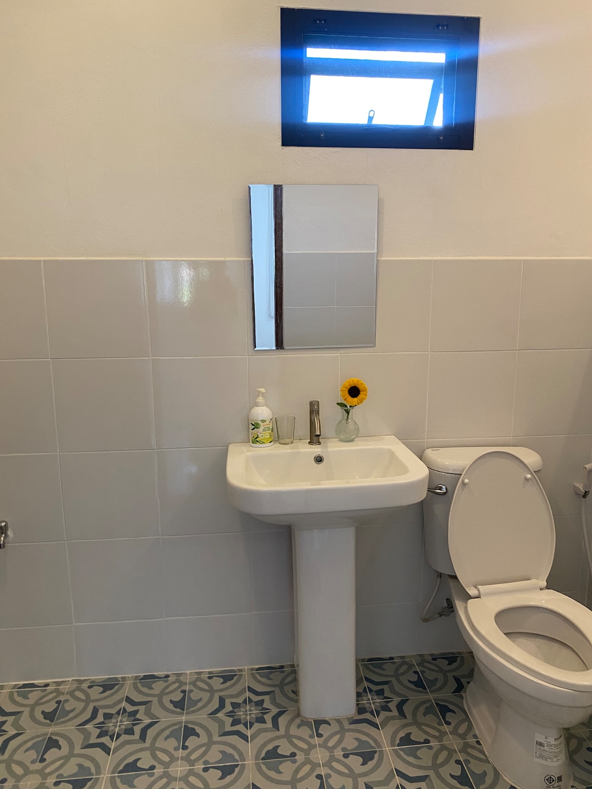 This bamboo hut is the first guest house at my farm, designed by myself. With a customized round window framing the whole rice field and mountain view. It has a private wooden bathtub, so you can have a warm bath in the chilly morning or evening here and enjoy the sunrise or sunset at the same time. There is basin next to the bathtub for you to brush your teeth and fresh up. On the other side of the house, it has a patio with hammock, for you to lay on and take a nap.