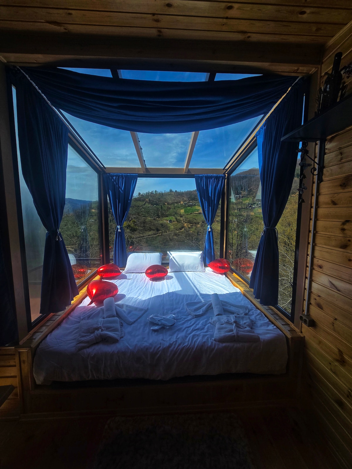 조지아에서 가장 아름다운 지역 중 하나인 라차에 위치한 넓고 평화로운 전원주택에서 가족이나 친구와 함께 휴가를 보내세요. 샤오리 호수와 뒷마당에 있는 인상적인 소나무 숲과 같은 창문에서 그림 같은 전망을 즐기실 수 있습니다.