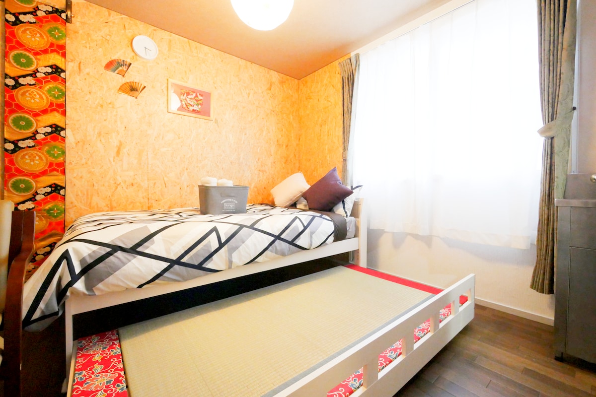 리모델링된 전통 일본 주택을 독특한 '아트 스테이'로 탈바꿈시킨 숙소로, 호쿠사이의 꽃과 새 작품이 특징입니다. 차분하고 아늑한 공간에서 정통 일본 생활을 경험해 보세요. 4명에게 가장 적합하며, 최대 5명까지 수용 가능합니다. 【중요】 - 계단이 가파릅니다. - 화장실이 작습니다. 현대적인 호텔에 대한 기대치에는 부합하지 않지만, 진정한 숙박을 즐기기에 완벽합니다. 【접근】 오하나자야역까지 도보 5분 스카이트리 및 우에노까지 쉽게 이동 가능 나리타: ~40분 / 하네다: ~60분
