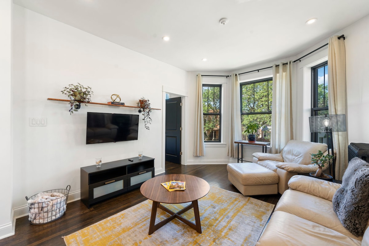 5-BD, 2-BR 듀플렉스; 1층과 정원 유닛의 조합. 기차역에서 도보로 3분 거리에 있는 저희 숙소는 대규모 모임에 완벽한 장소입니다. 실내 자쿠지, 완비된 주방, 무료 실내 주차장(차량 1대), 전용 파티오를 갖추고 있으며 최대 12명까지 숙박할 수 있습니다. 그릴, 대형 스크린 TV가 있는 화덕, 사운드 시스템을 이용하실 수 있습니다. 열쇠 없이 체크인 및 연중무휴 보안 카메라. 아름답고 편리한 듀플렉스 숙소에서 시카고의 최고를 경험할 기회를 놓치지 마세요. 지금 숙소를 예약하세요!