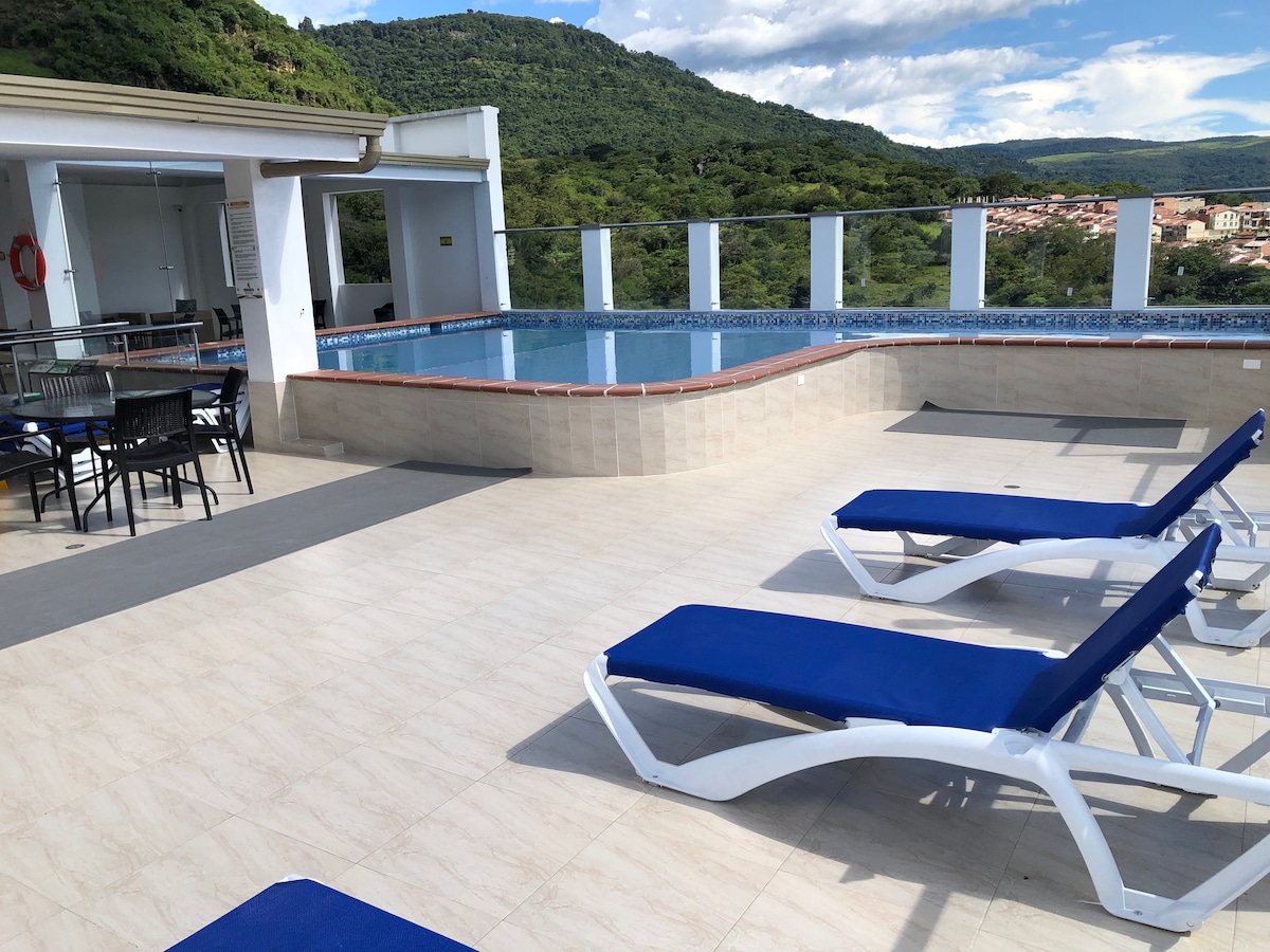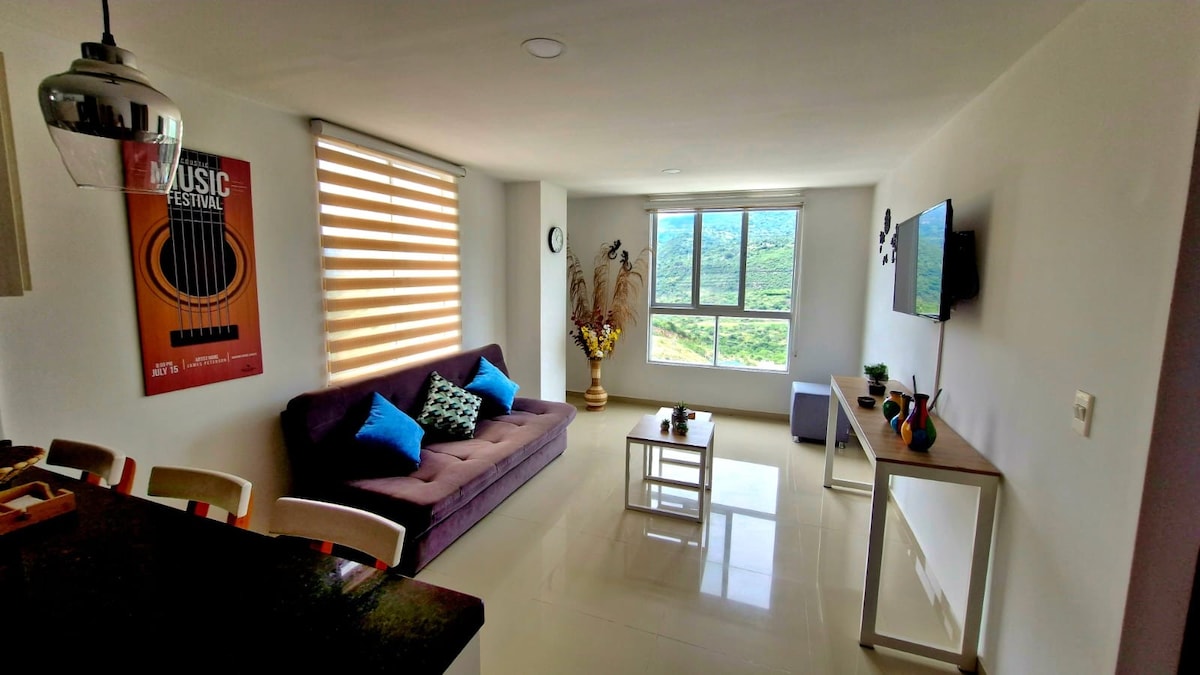 Beautiful brand new apartment. 10th floor with amazing sunset view. Central location. Residential and safe area next to the Cacique Mall and Neomundo Convention Center, easy access to Carrera 33,Cabecera,Girón and Floridablanca. 2 bedrooms, 2 balconies, hammock, 2 bathrooms, 2 beds, an auxiliary bed and a sofa bed. Excellent lighting and ventilation, 300mbps WIFI, 2 TVs with access to DirecTvGO, Netflix, Amazon and HBO. Ground floor of the complex with minimarket, bakery, pharmacy, among others.