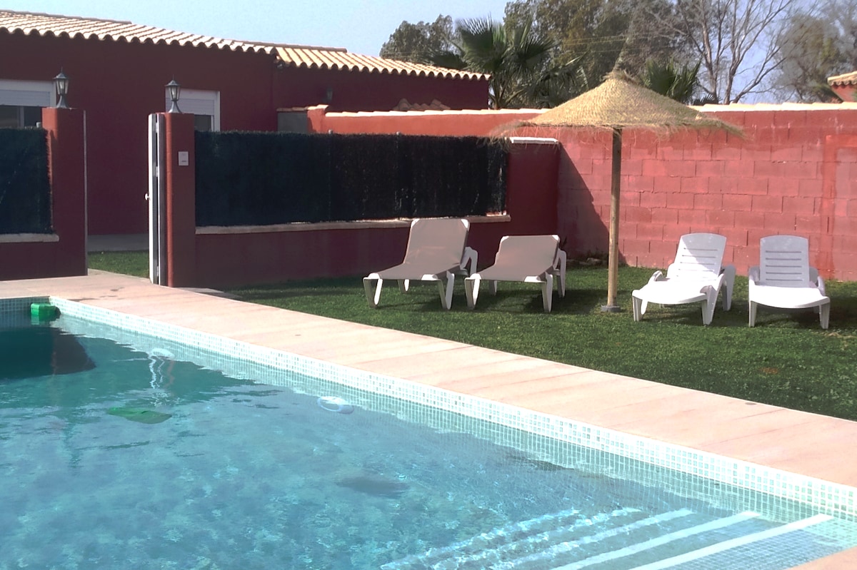casita con terreno, se compone; de una habitaciรณn con cama de matrimonio(150), otra habitaciรณn con 2 camas, mas un sofรก/cama de 140, baรฑo y salon/cocina totalmente equipada(sabanas,toallas,aire acondicionado, wifi...).Al exterior no le falta detalle, encontrarรกs piscina,sofรกs, barbacoa,tumbonas...todo esto a tan solo 1 kilรณmetro de la playa La Barrosa.