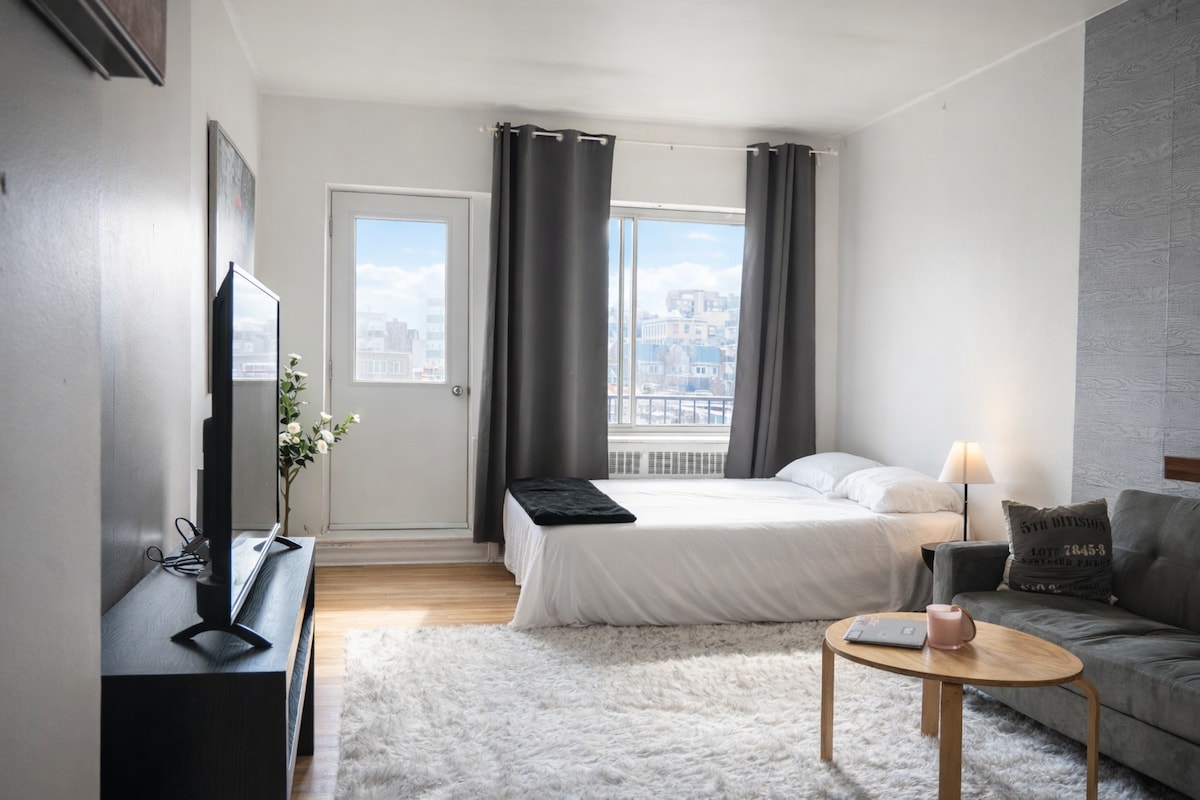 최소 4명을 수용할 수 있는 아늑한 아파트입니다. 추가 요금을 내면 1명을 더 수용할 수 있습니다(1박당 30달러 추가). 세 번째 방에는 캠프 베드가 있습니다. 시내 중심가에서 매우 가깝고 식료품점에서 도보로 몇 분 거리에 있으며 레스토랑, 상점, 카페, SAQ 등이 많은 시내 중심가 중심지에서 도보로 약 10분 거리에 있습니다. 자전거 도로에 쉽게 접근할 수 있습니다.