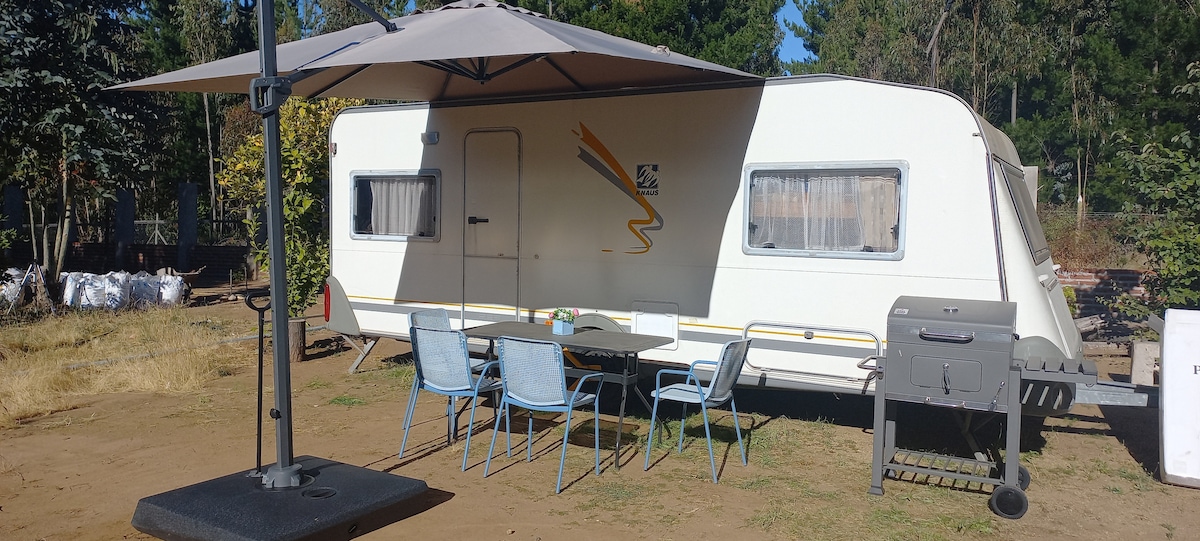 Casa rodante estacionada dentro de parcela a 2 km de Villa San Pedro camino a termas del Huife rodeada de hermosos paisajes y con acceso a rio privado. Se arrienda para 4 personas, cuenta con cocina full equipada, baño con ducha, TV con cable y radio. La distribución de las camas es la siguiente: -Parte de atrás 1 cama matrimonial + litera para 1 persona -Cama single en pasillo