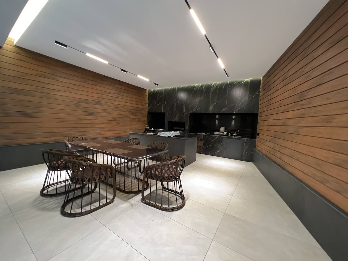 2023년에 지어진 조용한 저택에서 온 가족과 함께 편안한 시간을 보내세요. 밝고 흠잡을 데 없이 깨끗하며 산과 강에서 몇 분 거리에 있어 산책, 피크닉, 사진을 찍기에 완벽합니다. 넓은 거실 공간, 시설이 완비된 주방, 전용 마당/테라스, 빠른 와이파이, 에어컨 및 난방, 무료 주차장을 즐기세요. 추가 시설: 야외 수영장, 온수 실내 수영장, 사우나, 탁구, 플레이스테이션, 노래방. 이곳이 마음에 드실 거예요!