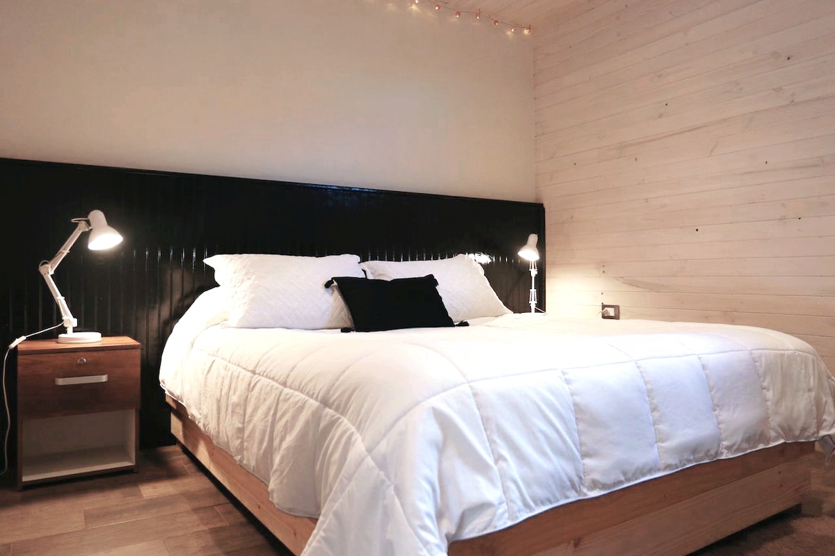 숲으로 둘러싸여 있으며 피칠레무, 푼타 데 로보스, 소금 평야에서 몇 분 거리에 있는 전용 콘도미니엄 발콘 데 카우일(Balcón de Cáhuil)에 위치한 현대적인 휴양지인 카사 살리네로 디자인을 만나보세요. 건축, 자연, 편안함을 결합하도록 설계된 이 숙소는 나무 구조물, 커다란 창문, 자연 환경과 통합된 테라스가 돋보입니다. 침실 1개와 욕실 1개가 있으며, 휴식, 프라이버시, 디자인을 찾는 커플이나 여행객에게 이상적입니다. 스타링크 와이파이가 있습니다.
