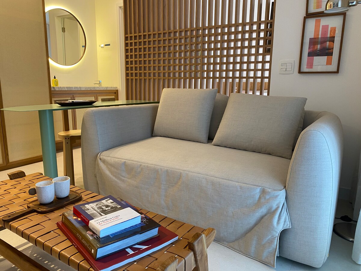 리오에서 가장 좋은 동네에 위치한 로프트이며 건축 사무소 카사 쿠루루가 설계했습니다. 2인에게 적합하지만 소파베드에 4명까지 수용할 수 있습니다. 필요한 모든 것이 "문앞"에 있습니다. 지하철역, 바, 최고의 레스토랑, 쇼핑몰, 해변... 하지만 동시에 매우 시골적이고 차분합니다. 완벽한 매칭, "chill n joy". 추신: 건물 내에 주차장을 제공합니다. 차량 번호, 색상 및 유형(발렛)을 보내주세요.